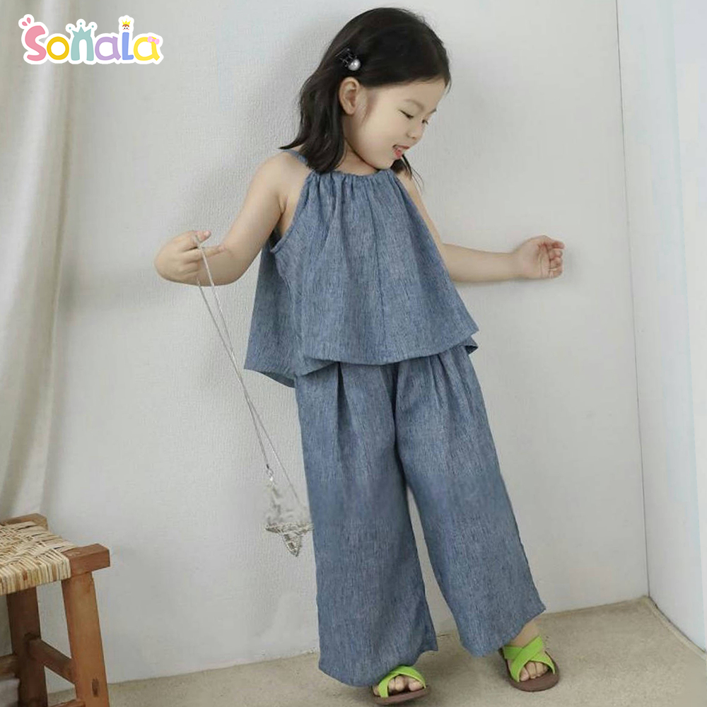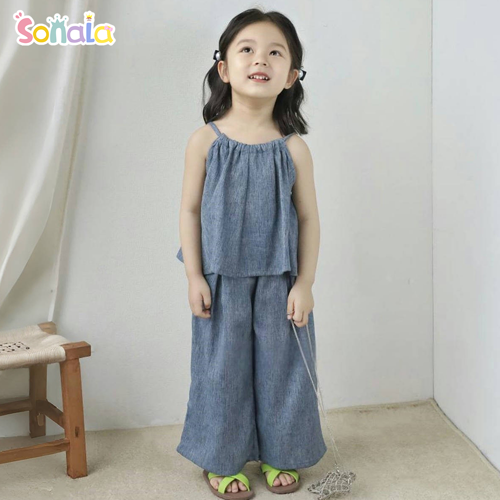 Setelan Anak Perempuan Atasan kamisol + Celana Kaki Lebar 2-10 Tahun Korean Style OOTD Fashion Setelan Anak
