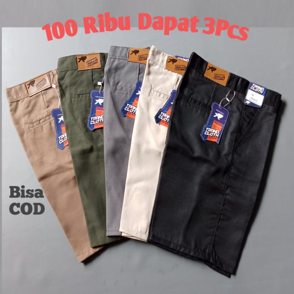 Promo 100 Ribu Dapat 3 Pcs Celana Pendek Chinos Pria Premium Quality Shot Pant Polos
