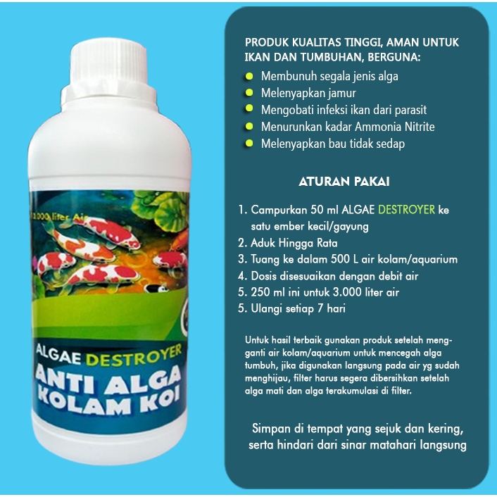 Algae Distoyer, Anti Algae Anti lumut dan Parasit Obat Pembasmi Lumut Kolam ikan hias dan Aquarium 500 ml