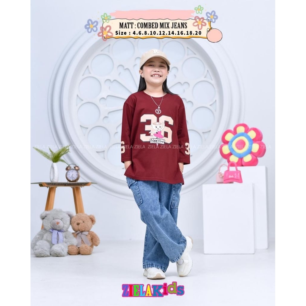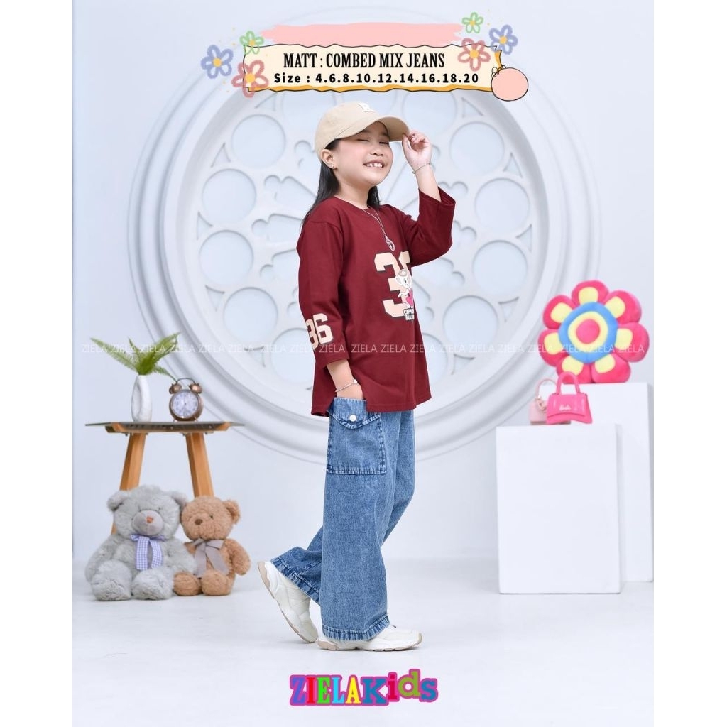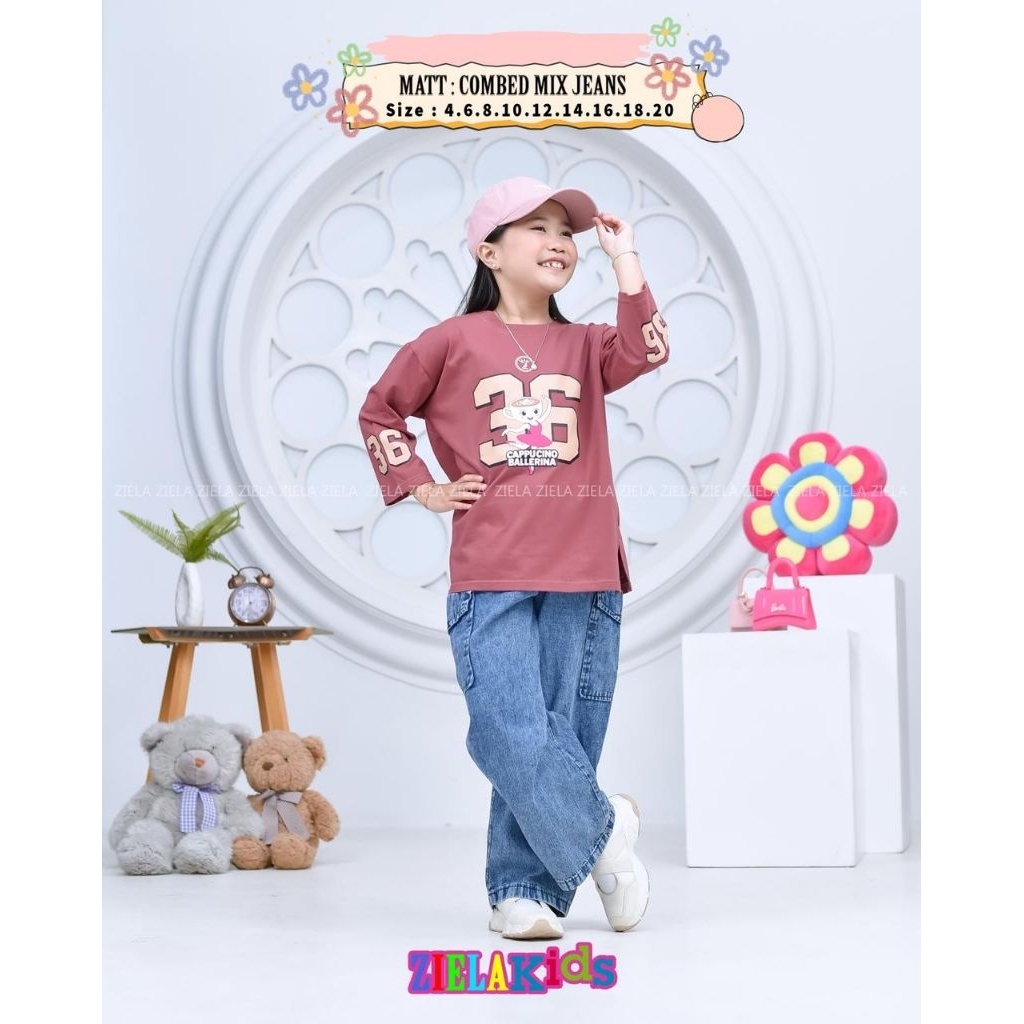 setelan anak perempuan terbaru/one set ziela kids terbaru/setelan celana anak perempuan bahan combad mix jeans/setelan c
