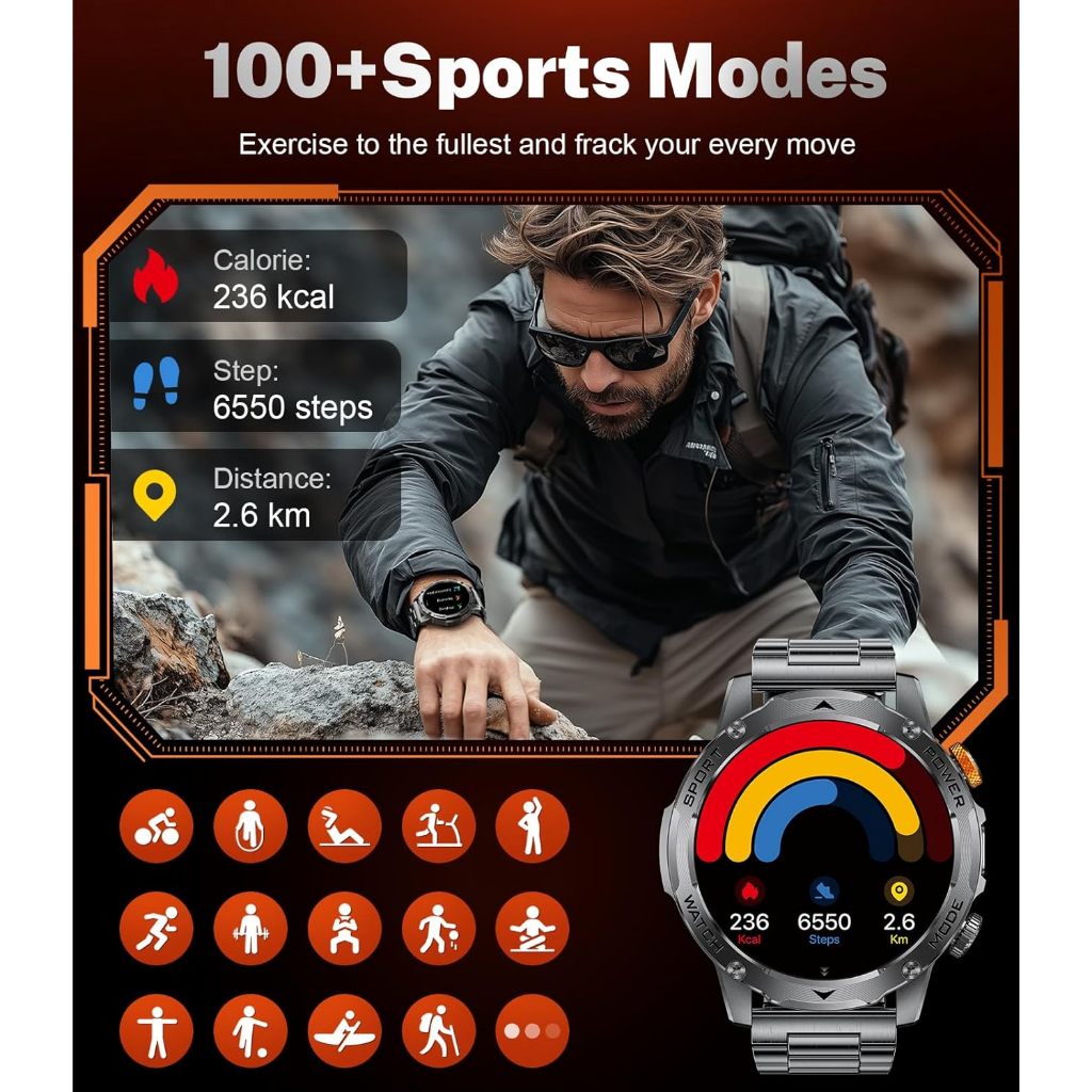 LIGE Smart Watch Men 1000mAh Large Capacity Battery Sport Watch Outdoor Flashlight Bluetooth Call Waterproof Smartwatch