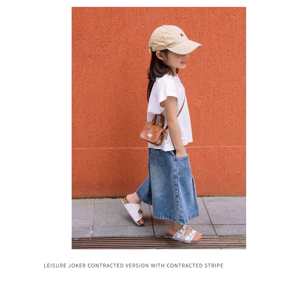 Setelan Celana Jeans Anak Perempuan Korean Style Setelan Anak Perempuan Atasan Putih Lengan Pendek+ Celana Jeans Panjang