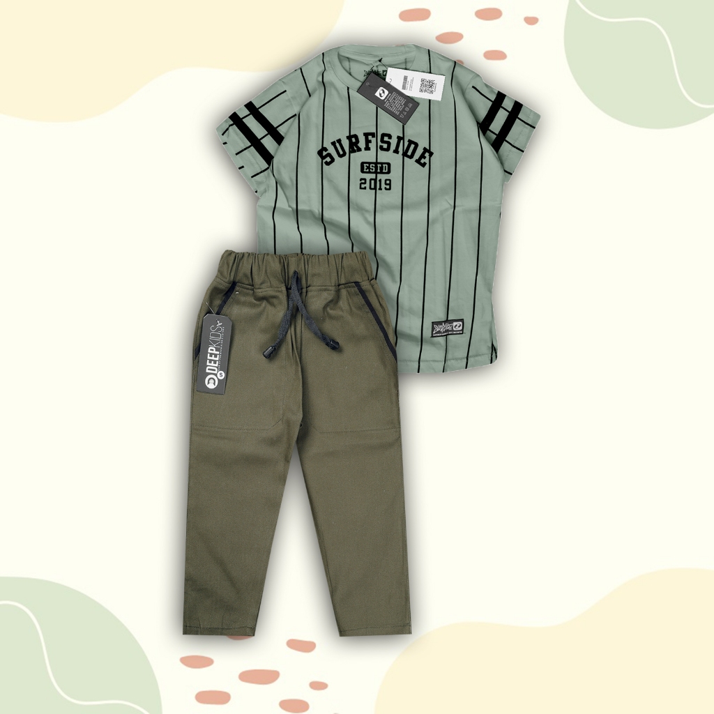 Setelan Anak Laki Laki Kaos Distro Basebal & Celana Chinos Panjang Usia 1-12 Tahun Premium | Set Basebal Chino Pjg