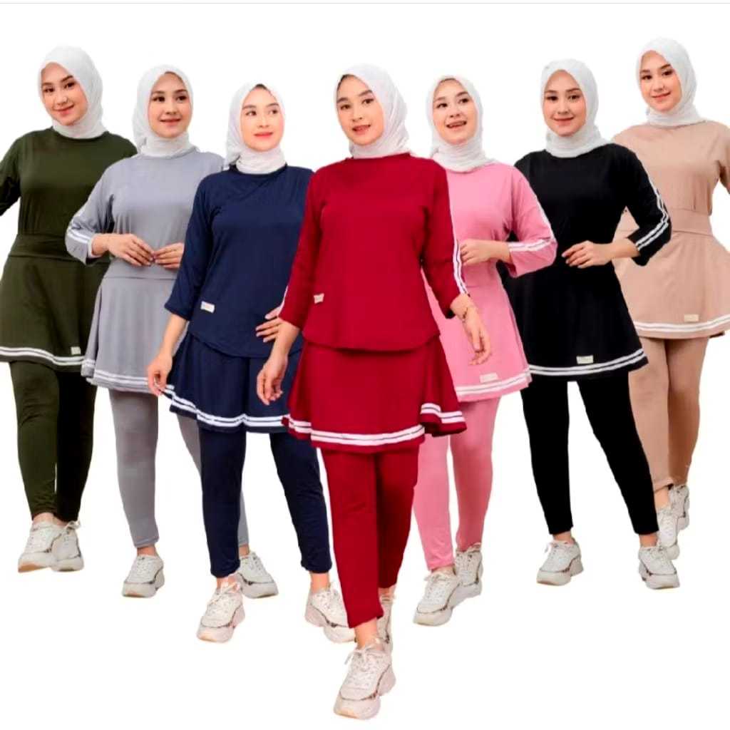 Setelan Baju Olahraga Prempuan Terbaru Legging Rok Sport Baju Badminton Lari Senam Bersepeda Gym