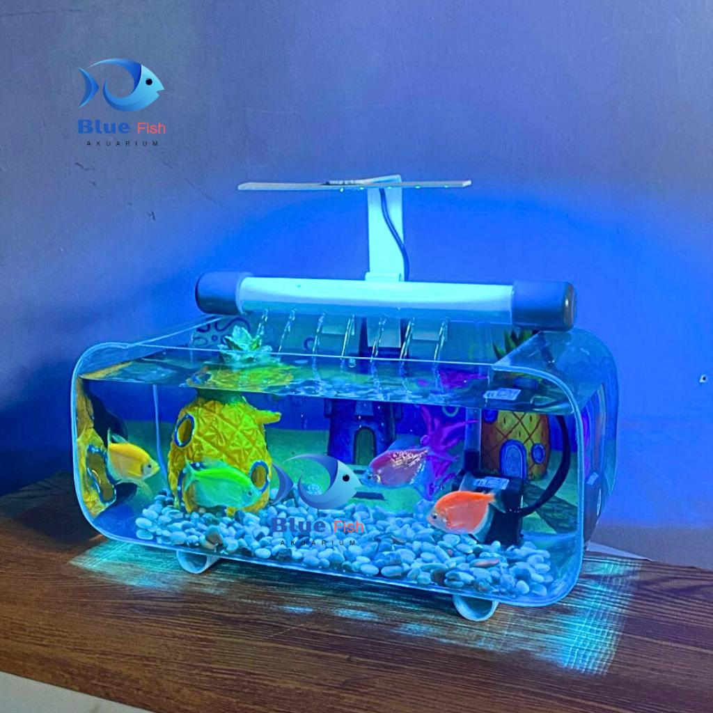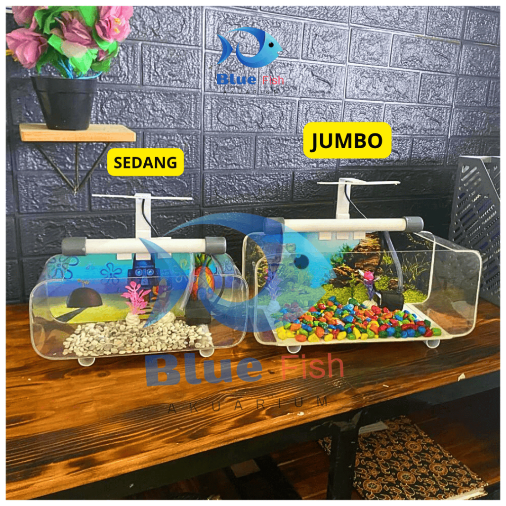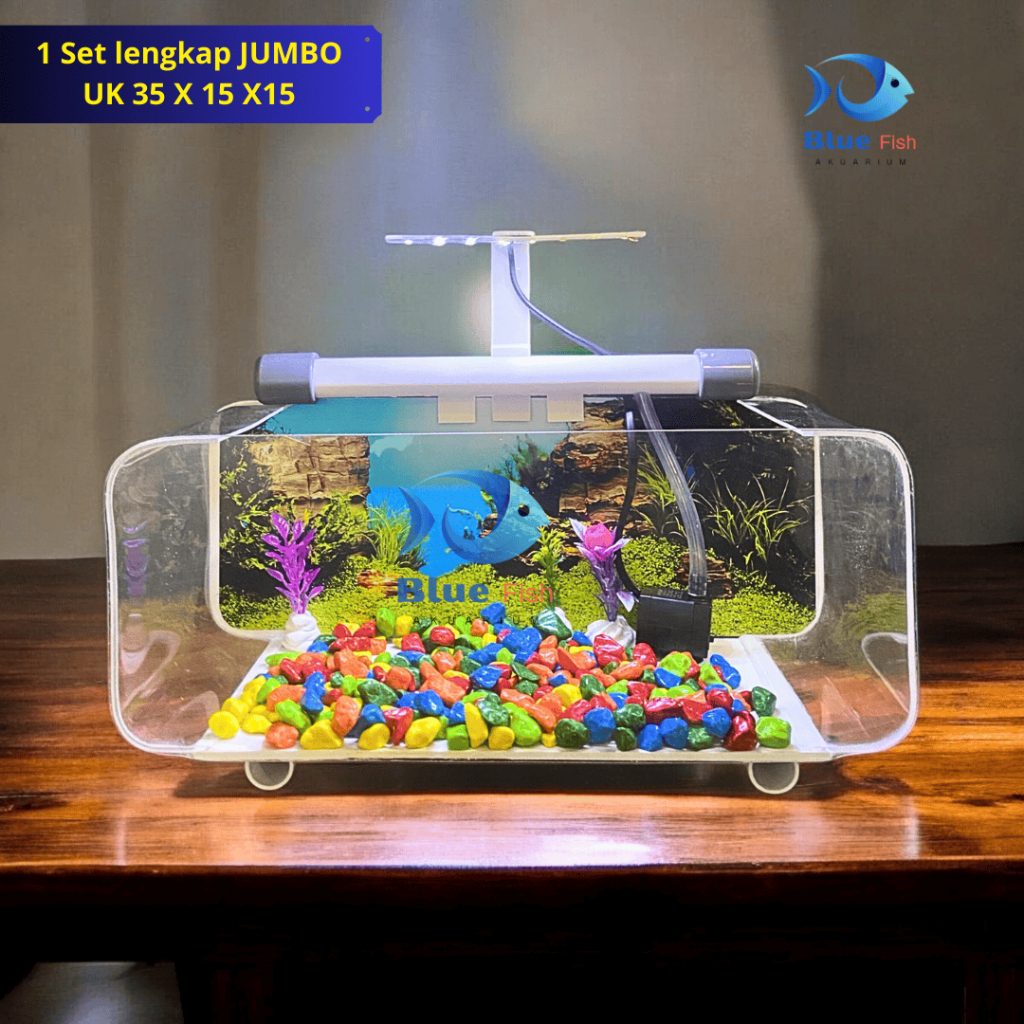1 Set aquarium akrilik/ akuarium minimalis JUMBO UK 35 X 15 X 15 lengkap tinggal pakai (jumbo PTB)