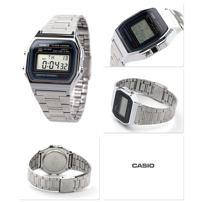 Casio Original A158WA-1DF Jam Tangan Unisex - Digital - Stainless- Silver