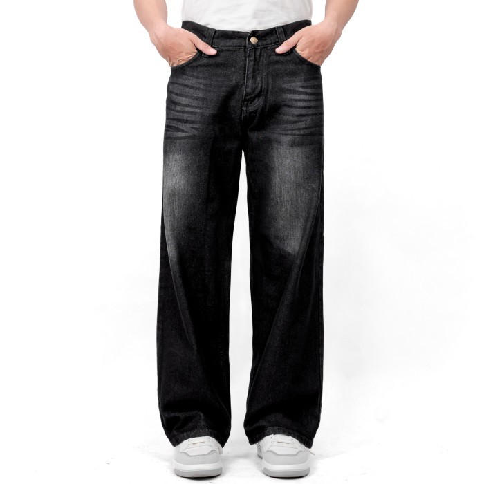 Celana Jeans Pria Washed Losse Straight Gombrong Komprang Skena Korean Style Baggy Pants Longgar