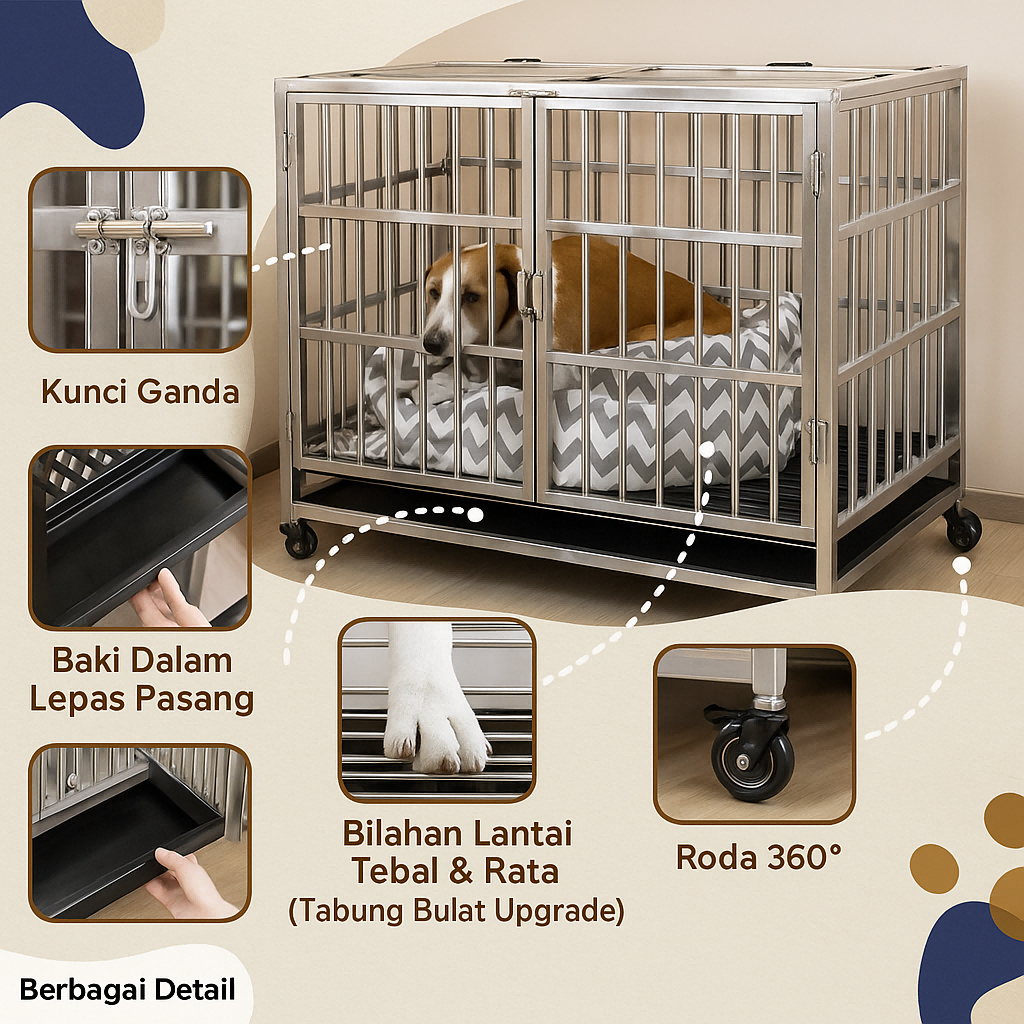 Kandang Anjing Besi Dayang kuat anti karat Stainless Dog Cage Penebalan Tabung Persegi Tabung Baja