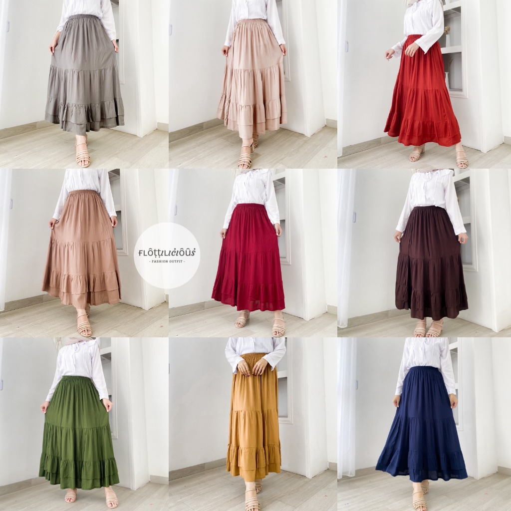 KAWAI SKIRT - FLOTTILICIOUS / Rok wanita Cantik / Korean Style / kain Katun Rayon / Bawahan panjang / Kiyowo / rok katun premium