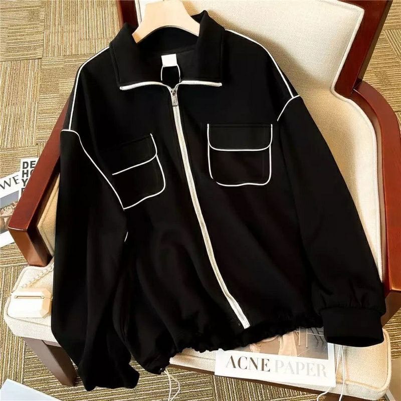 [Termurah di e] Vallina - White List Zip Pocket Jacket Outerwear Korean Remaja Wanita Premium