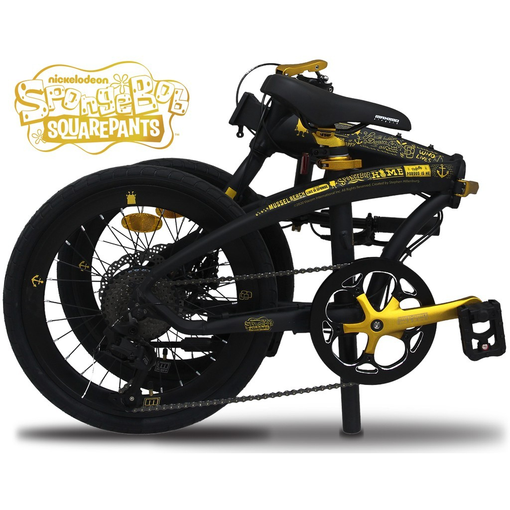 Sepeda Lipat 20 Inch MAXIMO Piegare Folding Bike 9 Speed Cyclo SpongeBob - Black-Gold Limited Edition