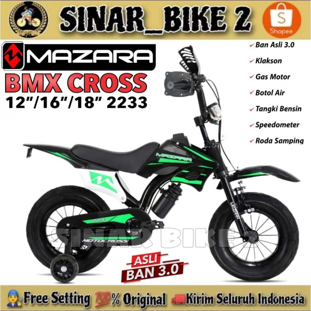 Sepeda Anak Laki Ukuran 12 16 18 Inch BMX ATLANTIS 88 MC // MAZARA MZ 2255 Suspensi Per Tengah / MAZARA MZ 2233 // BNB GP TRAIL Rem cakram Ada suspensi Model Motor Cross Trail Usia 2-8 Tahun
