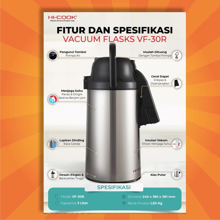 TERMOS AIR PANAS STAINLESS HI-COOK VACUUM FLASK THERMOS VF-30R 3 LITER