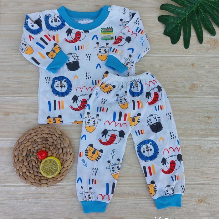 Terpercaya Setelan baju bayi lengan panjang motif Dayak usia 3-12 bulan - BIRU Hemat