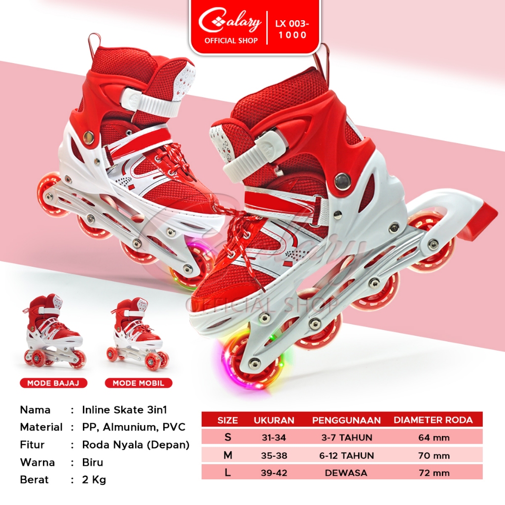 CALARY Sepatu Roda Anak Remaja Dewasa Roda Menyala 1 Karet PVC PU 003-1000