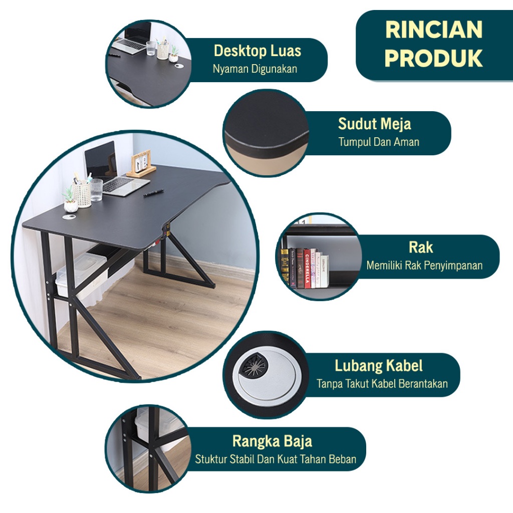 Brookwood Meja Kantor Minimalis Meja Kerja Rak Serbaguna Meja Komputer Gaming Meja Belajar Aesthetic Ukuran 120x60