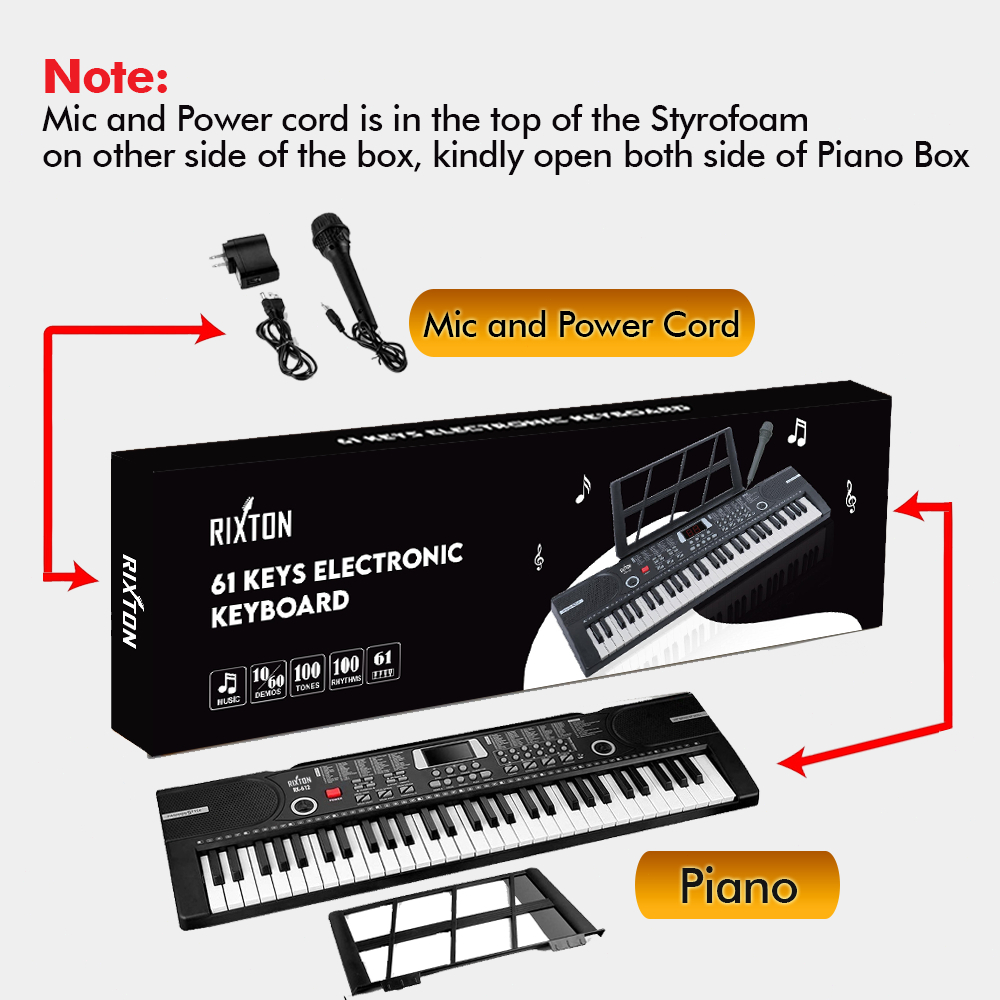 RIXTON 61 Keys Digital Electric Piano Keyboard Portable Electronic Keyboard for Beginners