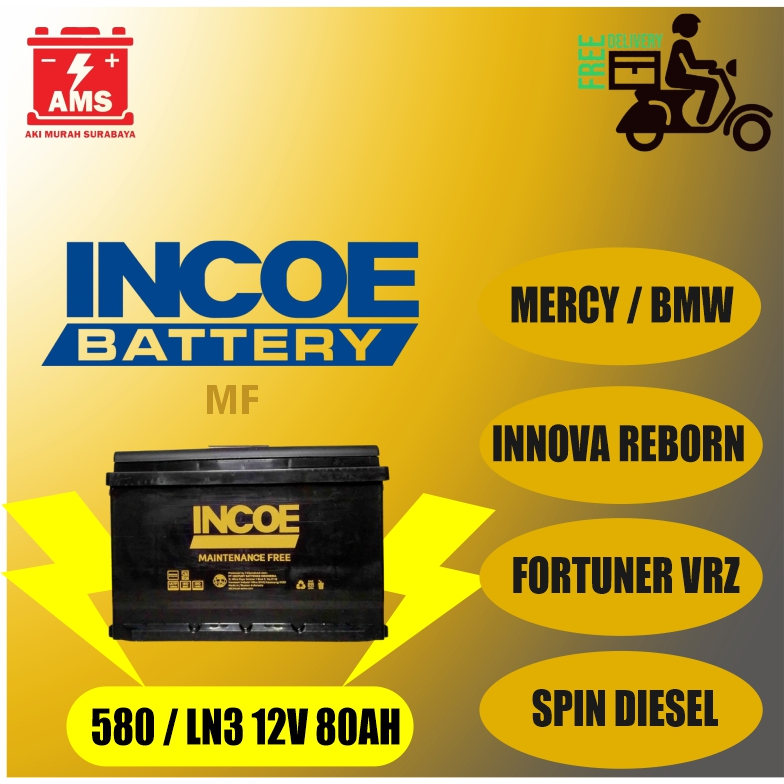 Aki INCOE 580-24 / LN3 12V 80 Ah Innova Reborn, Fortuner Vrz Surabaya Gratis Kirim & Pasang
