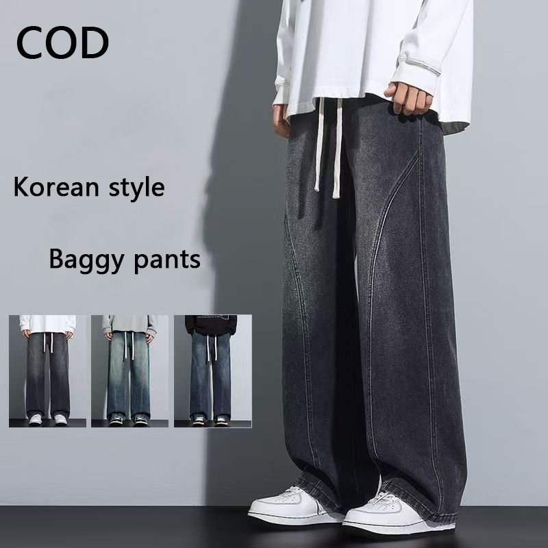 Keyboy celana jeans pria panjang baggy pants celana denim dewasa cowok oversize hitam abu S-5XL korean style