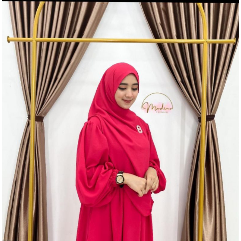 Gamis Set Hijab Luna Syar'i Pasmina Oval Cringkel Airflow Gamis Lebaran 2025 Model Gamis Terbaru