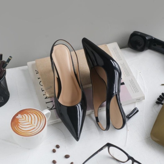 Coffee Heels — Tangerinemarché | Sepatu Heels Wanita | Covered Mules Basic | Heels Casual Kerja Work Formal 7Cm