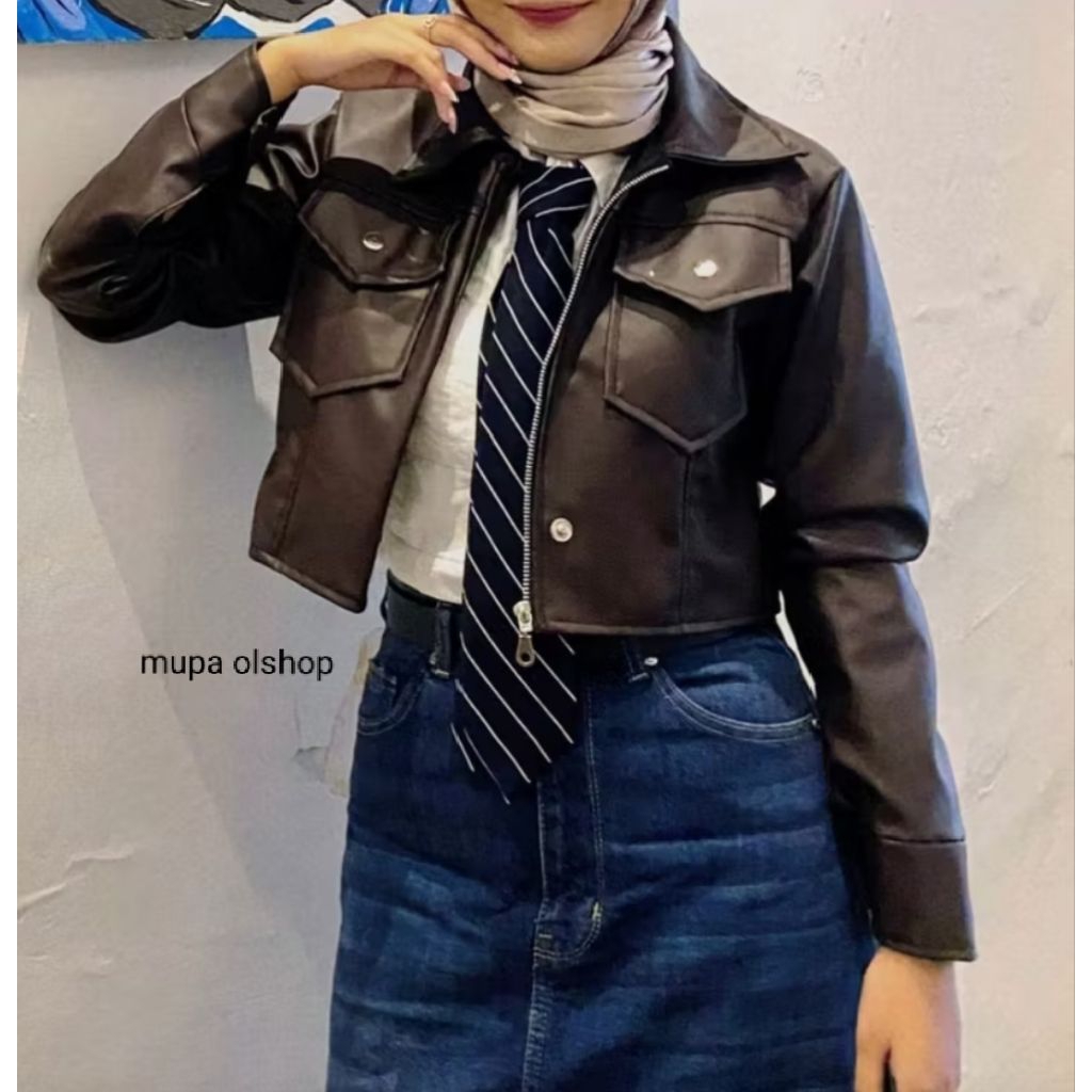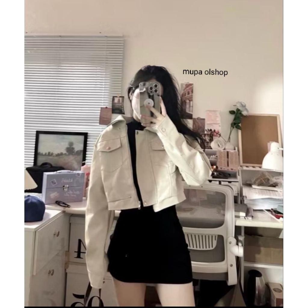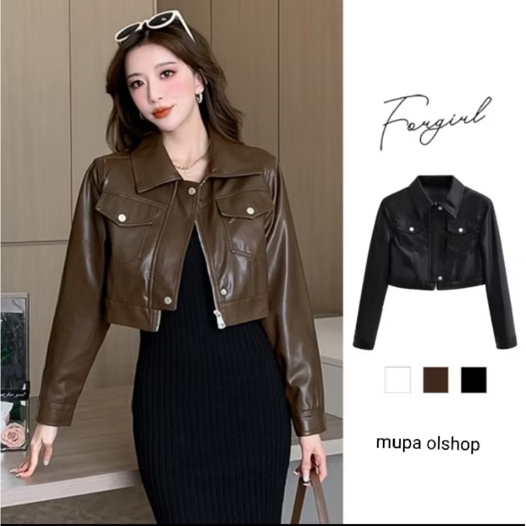 Mupaolshop - LEATHER JAKET /JAKET KULIT WANITA /JAKET CROP / JAKET KULIT KOREAN STYLE