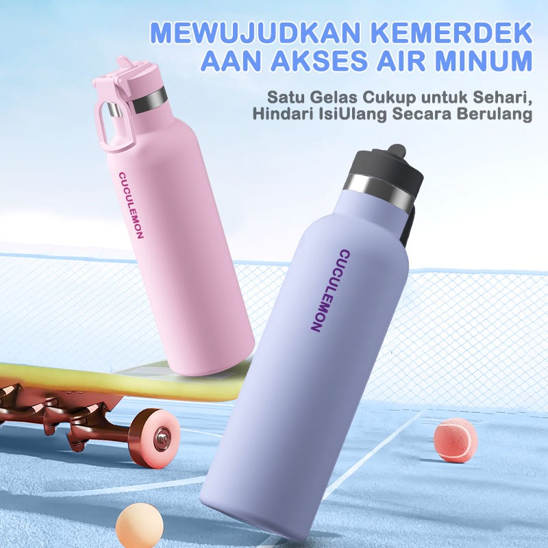 CucuLemon Tumbler Olahraga Stainless Steel 750ml Termos Tahan Panas Dingin Botol Minum Portable