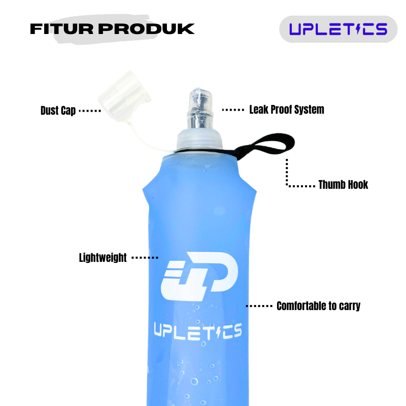 Upletics Foldable Soft Flask 500 ML Sport Running Water Bottle With Dust Cap | Botol Air Minum Lipat Running Hiking Trail Olahraga BPA Free