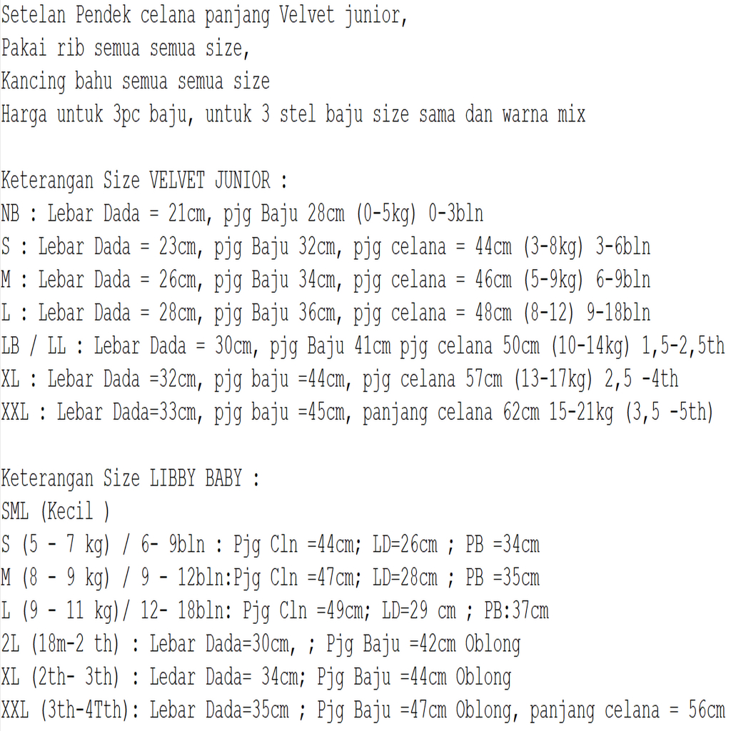 Paket Hemat Bundle 3 | CPR Stelan Pendek Panjang Velvet Junior SML LL XL XXL