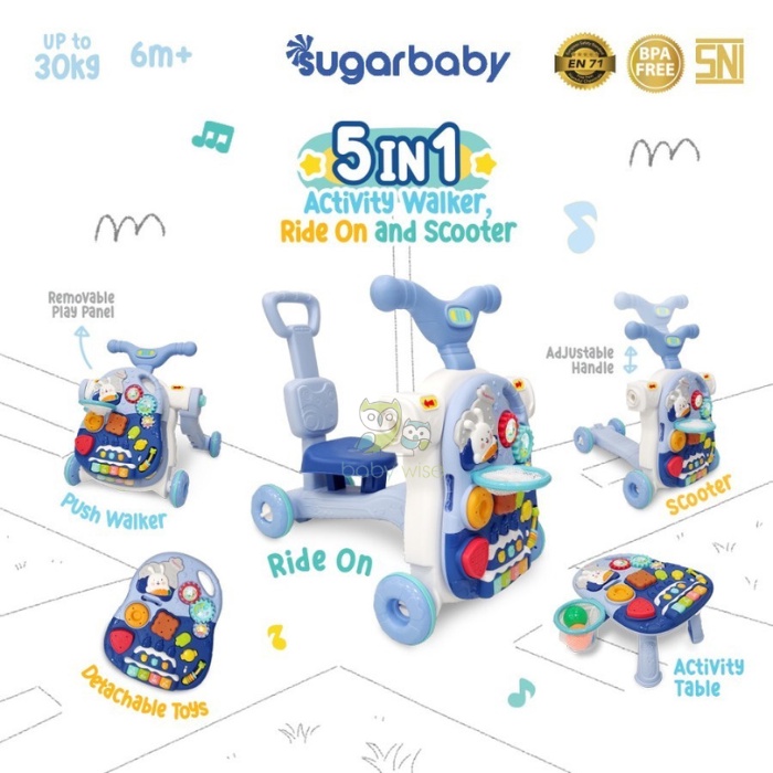 Sugar Baby 5in1 Activity Walker, Ride On & Scooter - Push walker/Activity walker/Baby walker