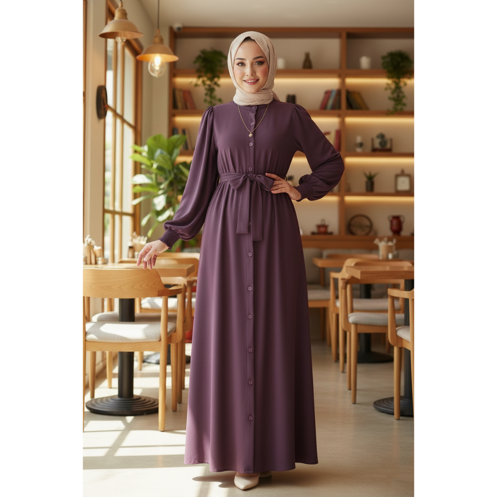 Gamis Lebaran Kancing Busui Syifa Crinkle Elegan