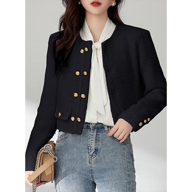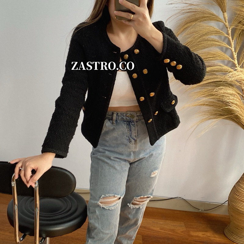 BT-3291 Blazer Tweed Hitam Model Simple Elegant Gaya Klasik