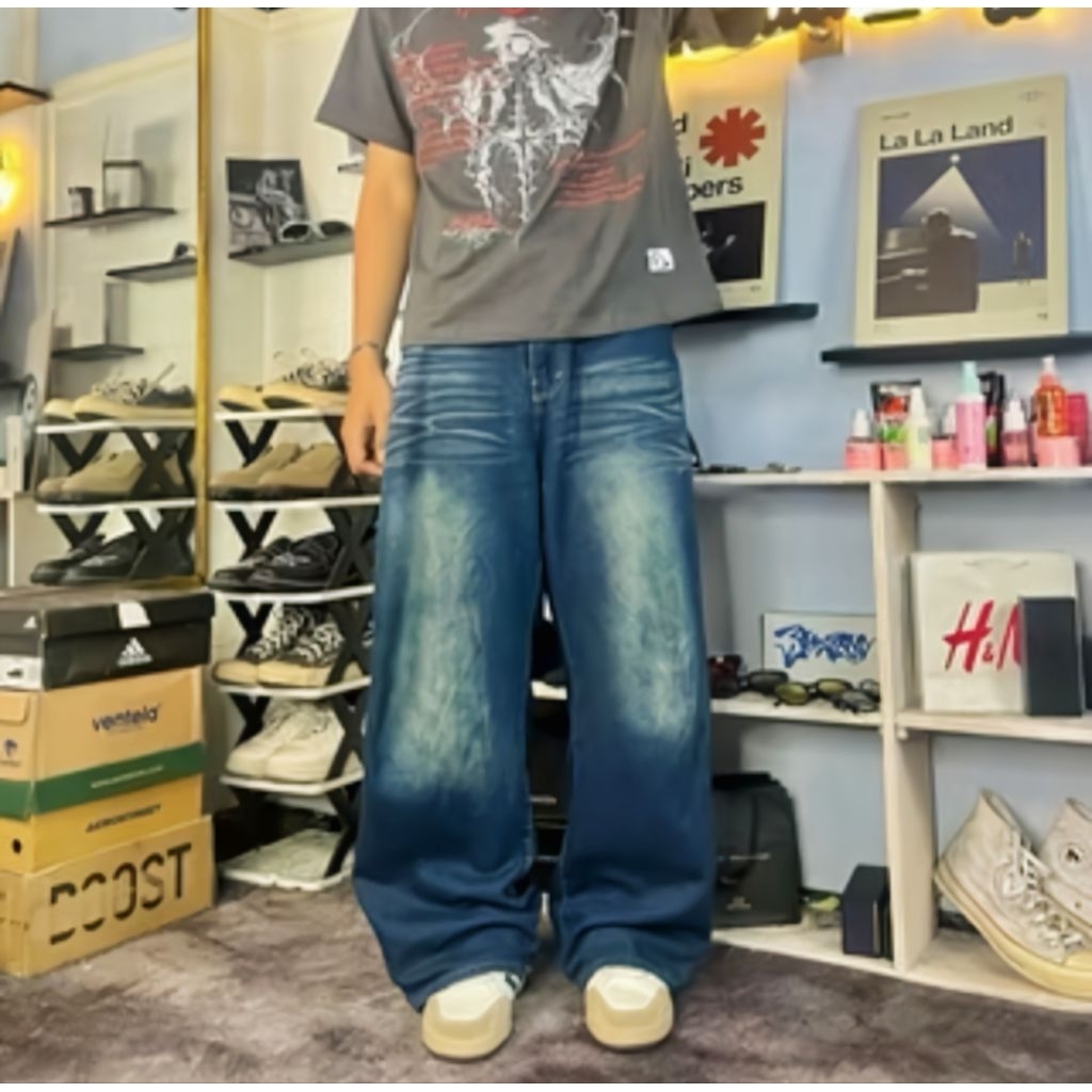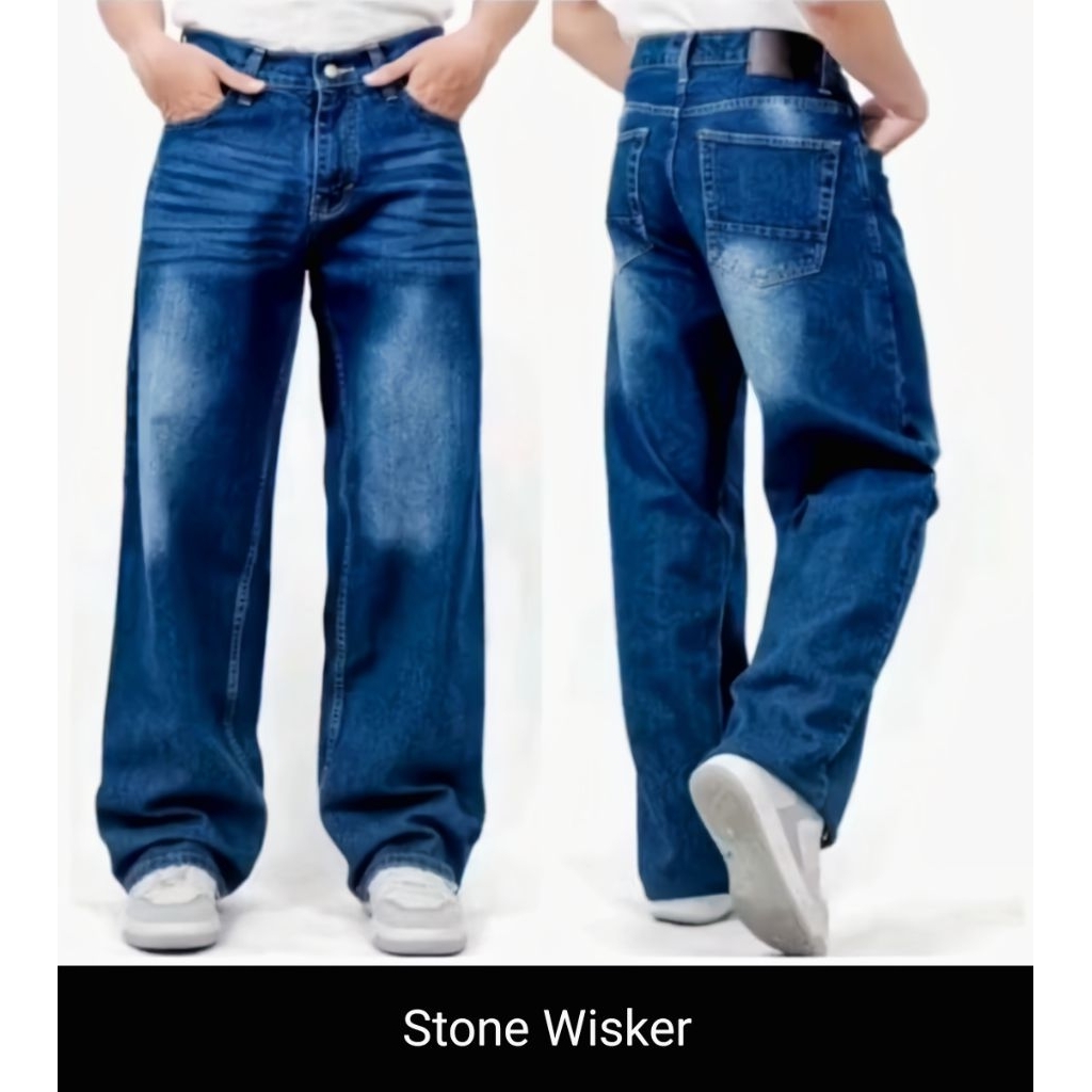 Celana Panjang Pria Jeans Gombrong Skena cowok baggy jeans gombrang wisker
