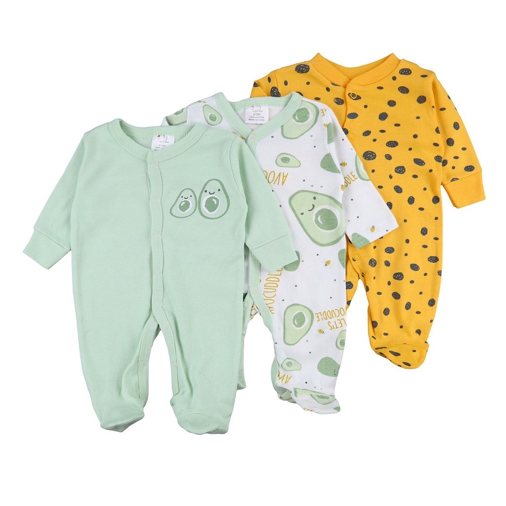 BABYPOTATO - 3pcs Sleepsuit Bayi 0-9Bulan Paket Piyama Baby Baju Tidur Bayi Anak Jumper Panjang