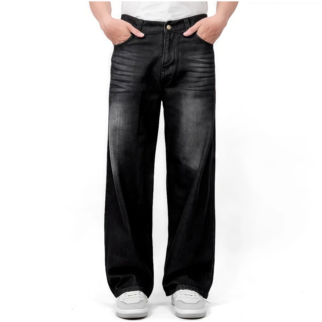 Celana Jeans Spray Wide Leg Wisker Gombrong - Celana Panjang Jeans Washed Loose Fit Pria