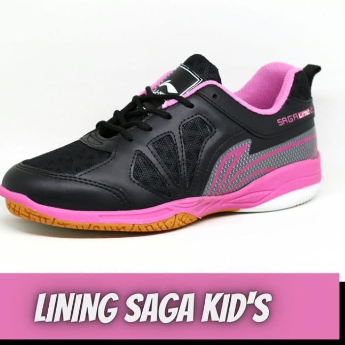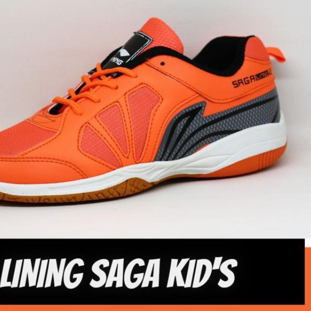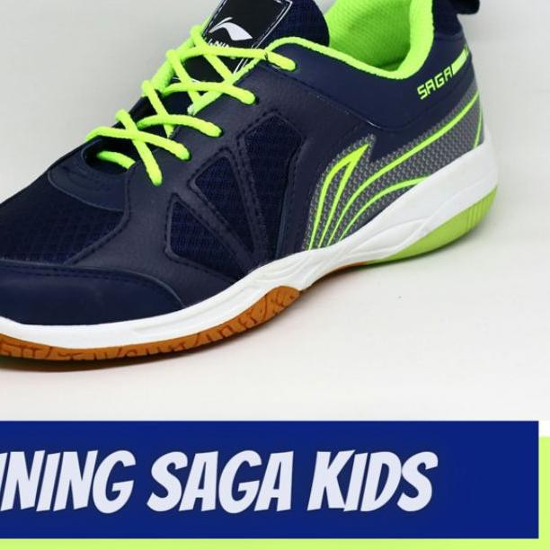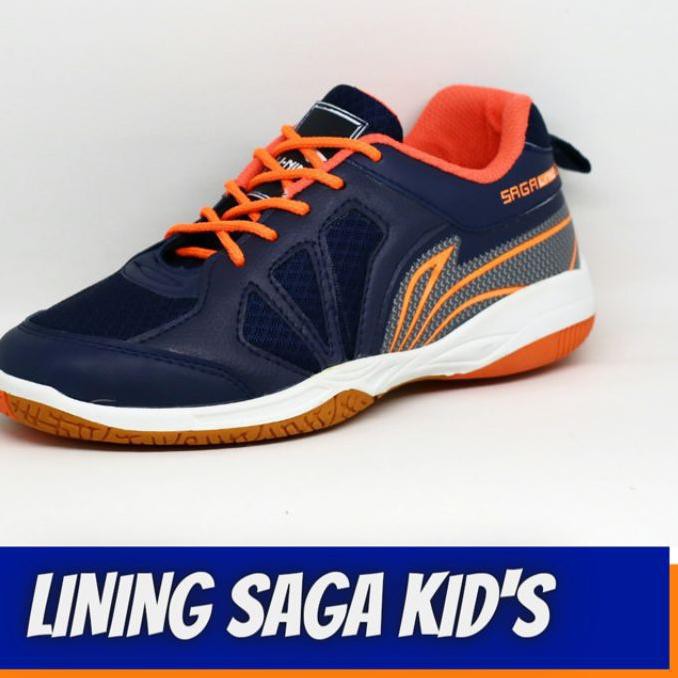 Sepatu Badminton Bulutangkis Anak/Wanita Lining Saga Kids Biru Navy Orange Olahraga Senam Pria 35-