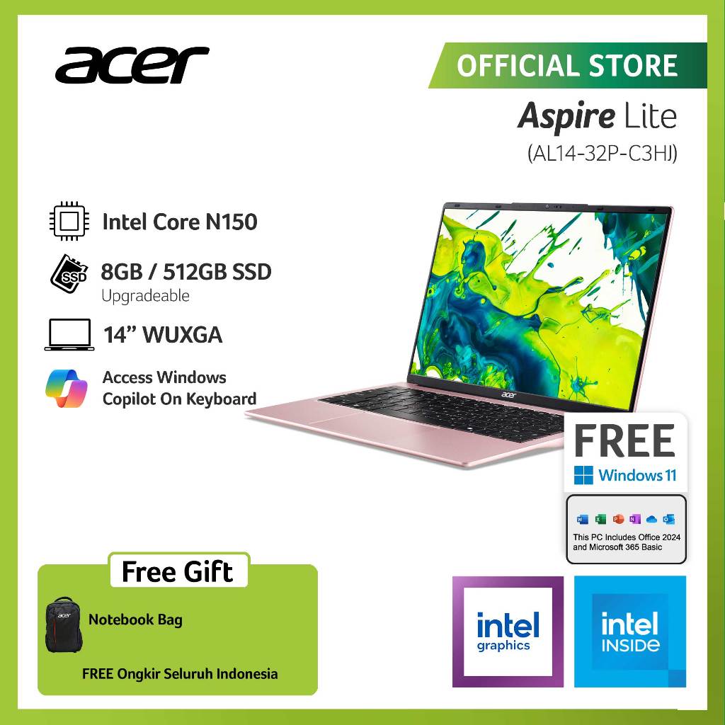 ACER LAPTOP ASPIRE LITE AL14-32P-C9VS/AL14-32P-C1ES/AL14-32P-C3HJ 14" WUXGA INTEL N150 RAM 8GB STORAGE 512GB SSD INTEL G