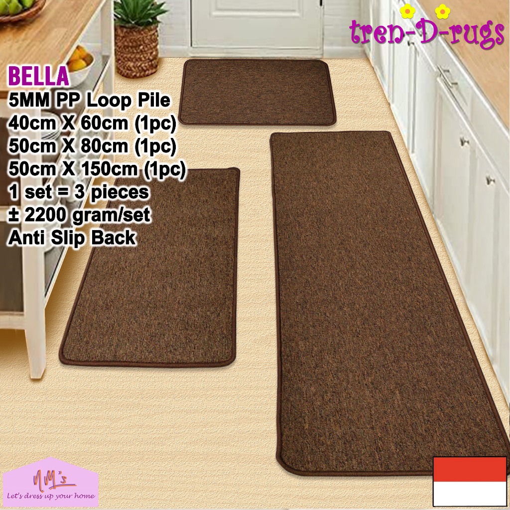 Keset Kaki polos lantai dapur panjang lorong runner kitchen mat anti slip 1 set isi 3pcs - NMs