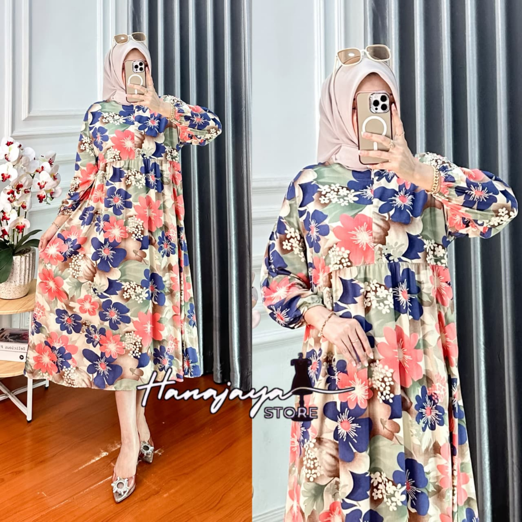 Kalana Midi Dress LD 120 Dress Busui friendly mat rayon MOTIF BUNGA