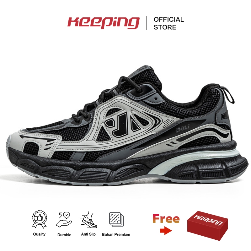 Keeping Sepatu Sneakers Pria Outdoor Original Sepatu Cowok Jalan Hiking Hitam Kekinian KSR729