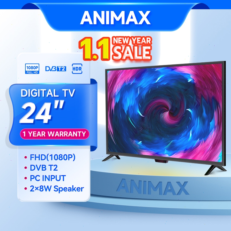 Animax TV LED 24 30 Inch Digital TV FHD DVB-T2 Murah [Garansi 1Th] Tanpa STB Anti Pecah Monitor PC-AV