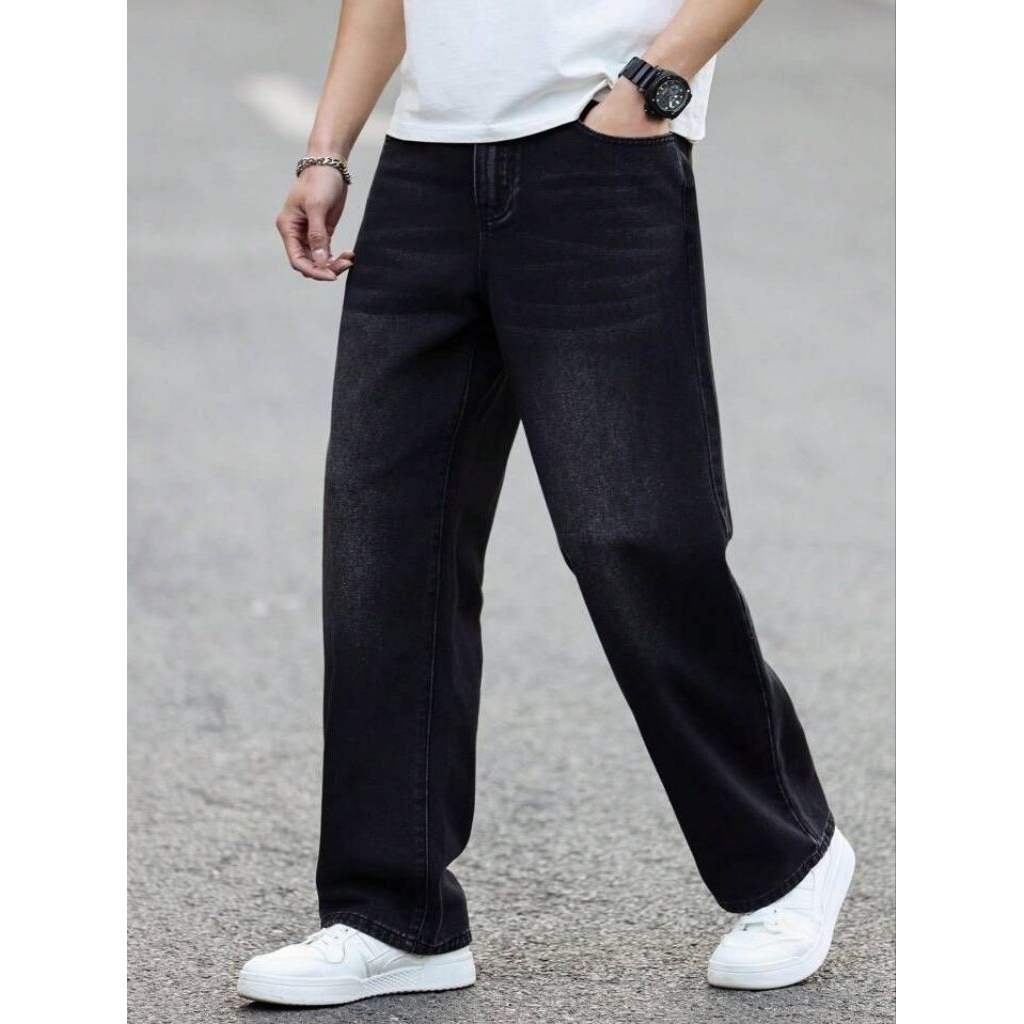 Celana Highwaist Oversize Loose Baggy Skena Pria Hitam Dan Biru Wishker Denim