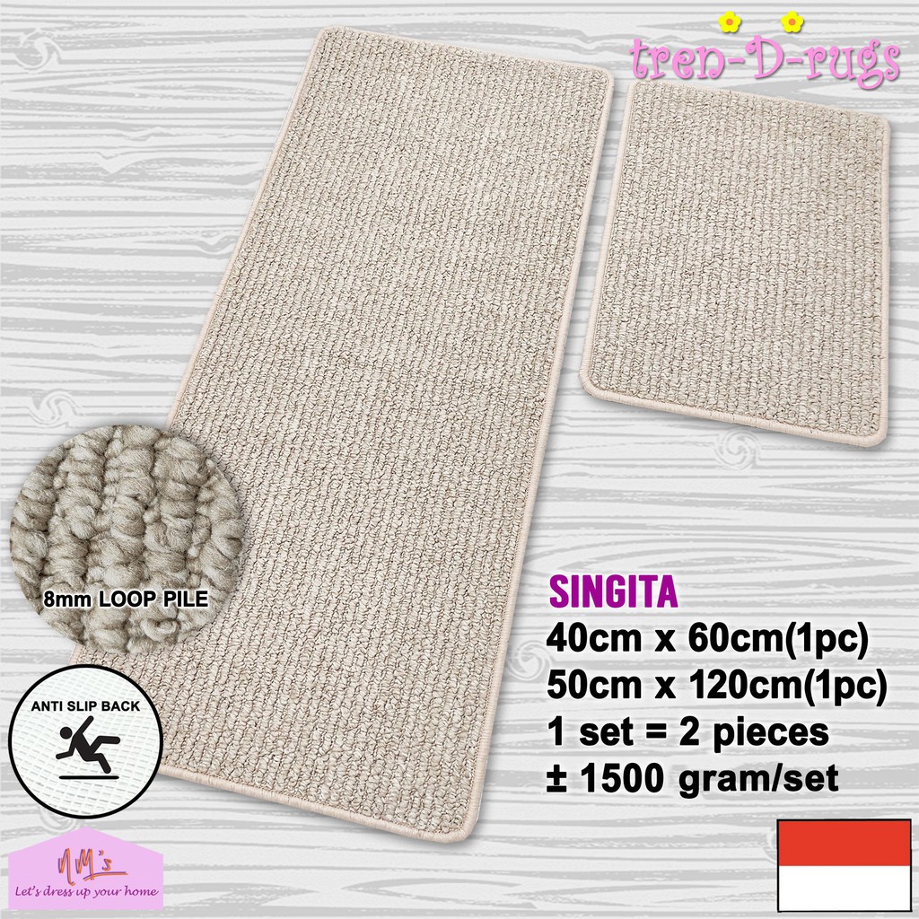 Keset kaki polos salur dapur panjang runner lorong alas lantai ruang tidur anti slip 2pcs - NMs