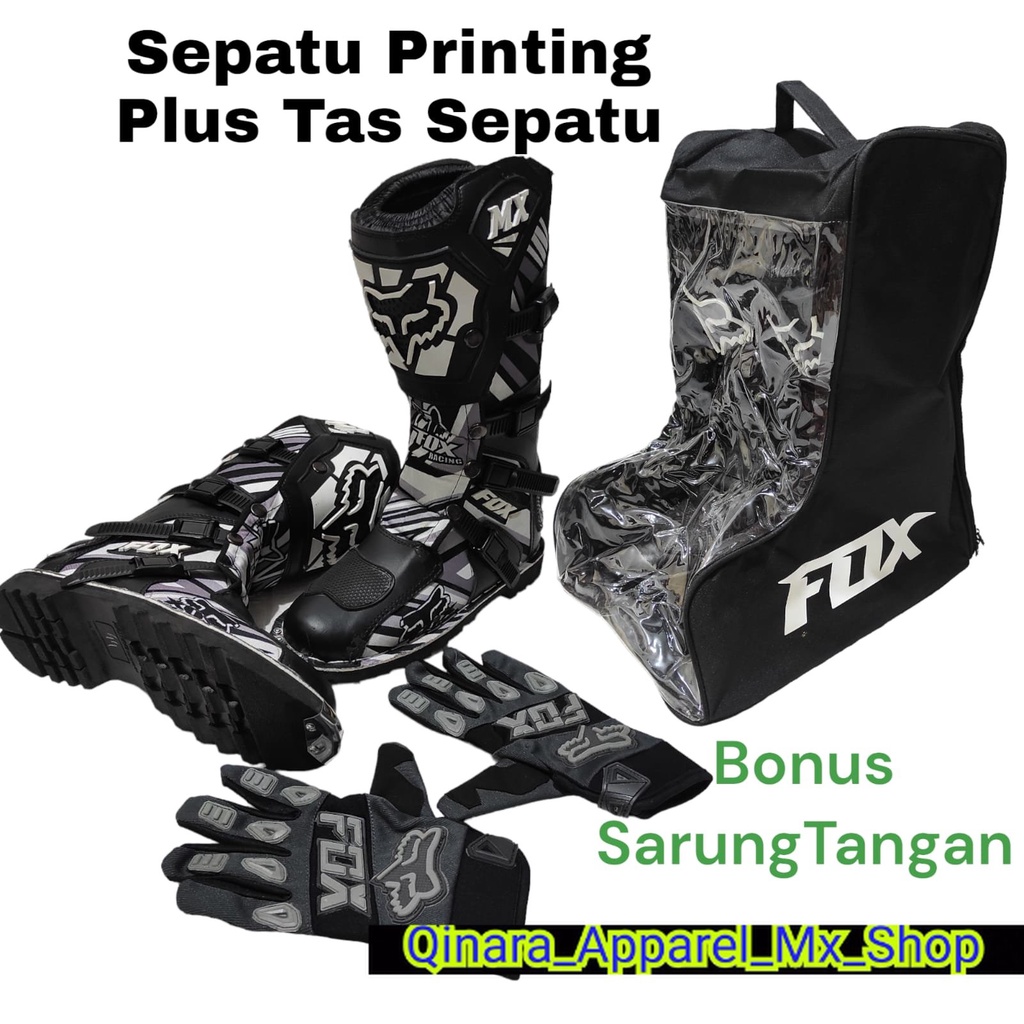 sepatu trail cross printing plus tas buat sepatu bonus sarung tangan satu set sepatu trabas or adventure dan tas satu set cocok dan keren sepatu enduro kualitas terbaik GREY BLACK bisa