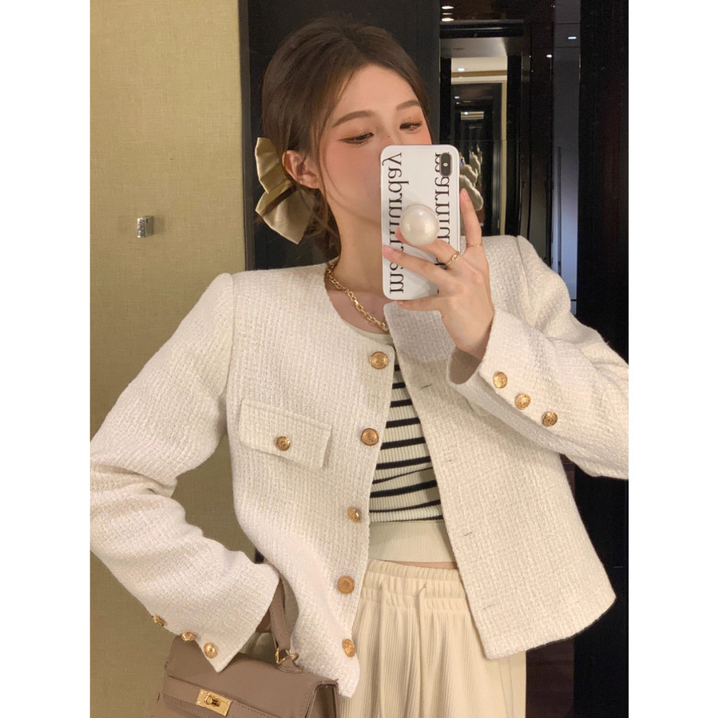 EMITA BLOOM baju christmas er burgundy wanita kekinian korean style tweed blazer plus size cute croptop formal er merah kondangan simple elegan