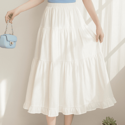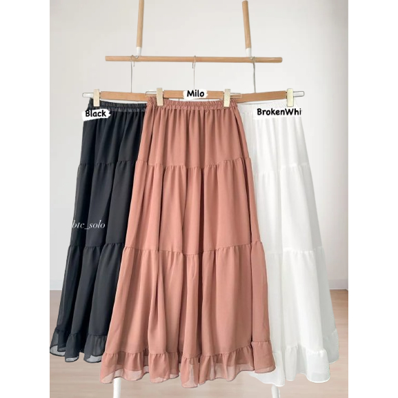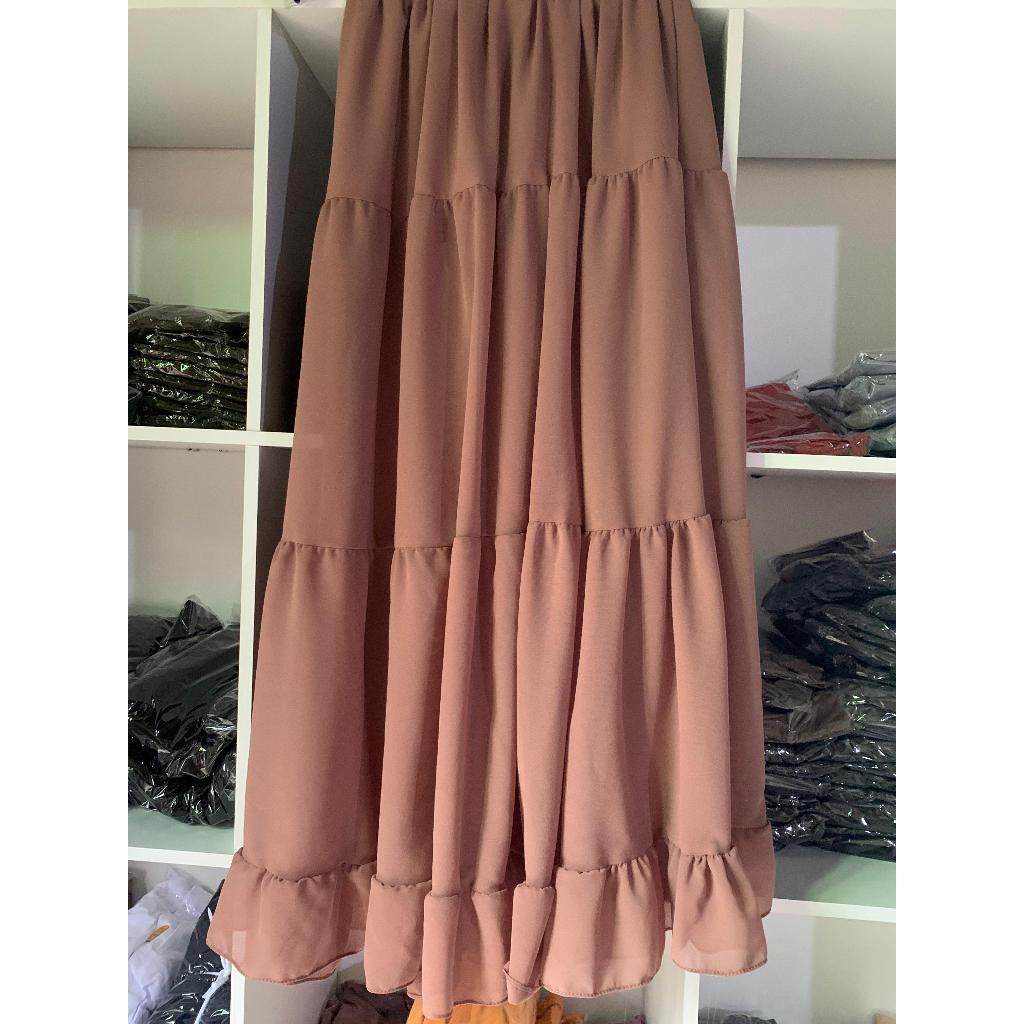 ROK RUFLA MIDI SKIRT CERUTY PANJANG FULL FURING PREMIUM PEREMPUAN WANITA MUSLIMAH TERMURAH