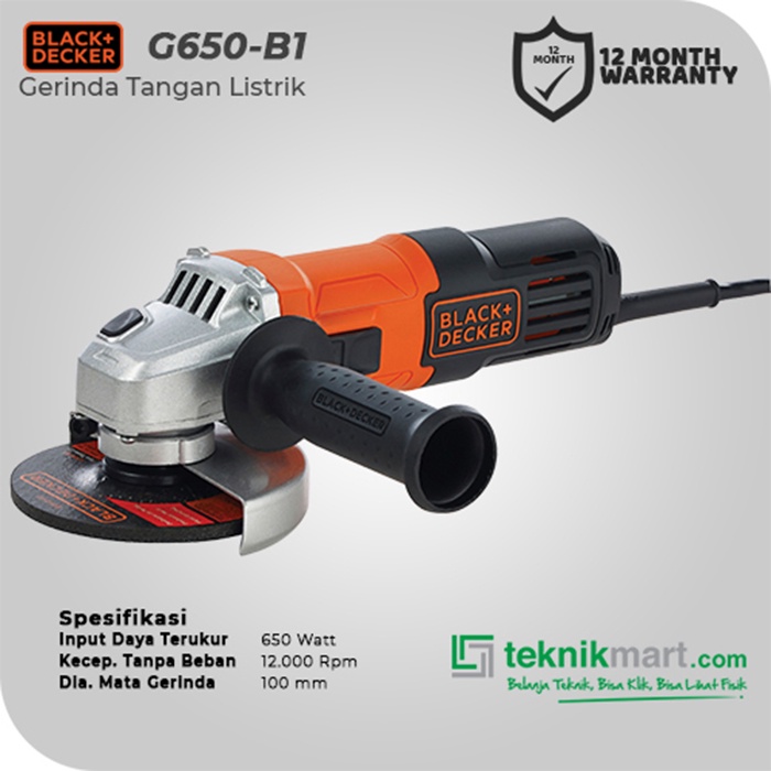 Black & Decker Angle Grinder / Gerinda Tangan Listrik 650W 100mm G650
