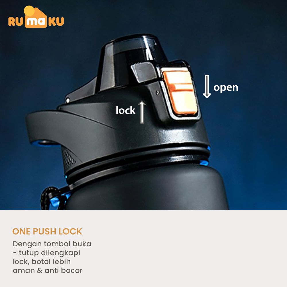 Rumaku Botol Minum 1 Liter Premium Water Bottle Sporty Olahraga Lock One Push Anti Bocor BPA Free