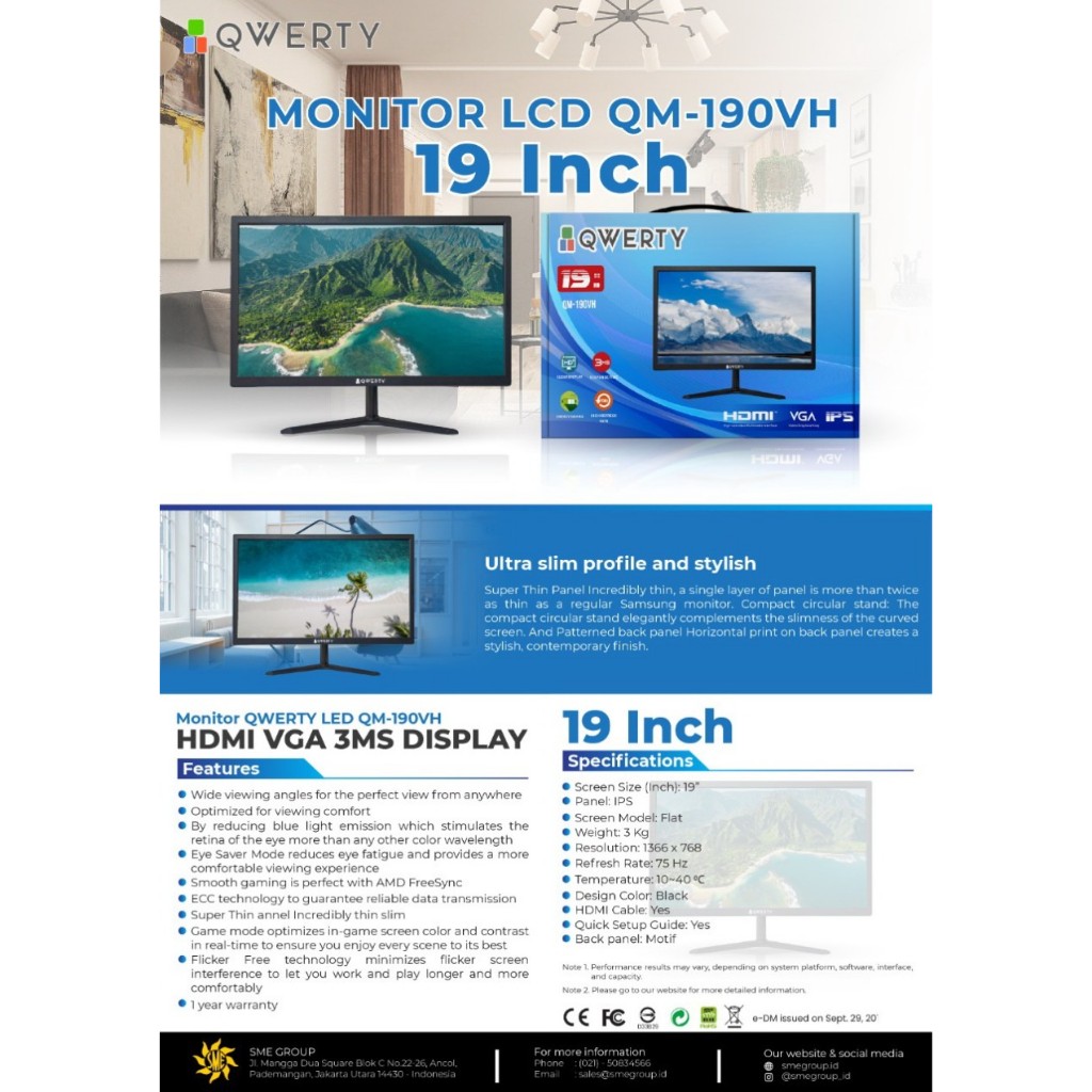 Qwerty QM-190VH LED 19 Inch HDMI VGA - LCD Led Monitor 19" 19Inch