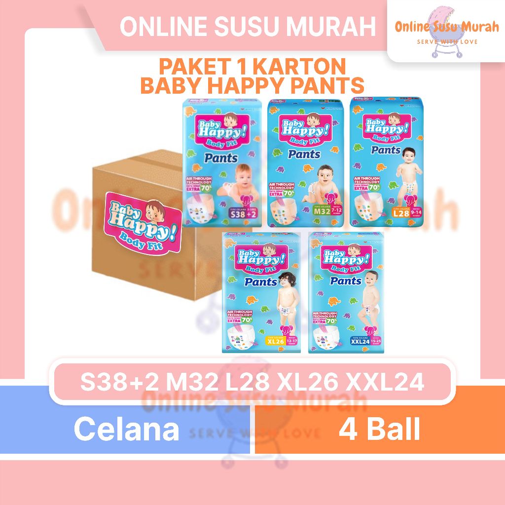 BABY HAPPY PANTS Tahan 12 Jam PAKET 4 BALL / 1 KARTON M32 L28 XL26 XXL24 S38+2 PPKS